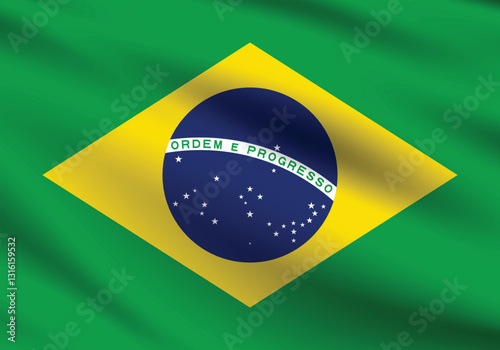 © Flag, Fototapeta premium Brazil flag official colors and proportion digital vector illustration. Pleated flag.