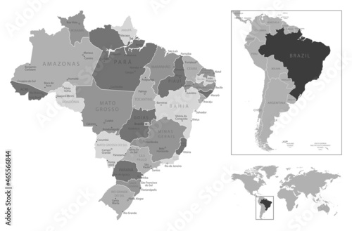 © gt29, Obraz premium Brazil - highly detailed black and white map.