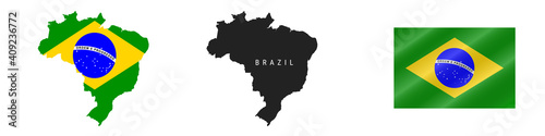 Fototapeta premium Brazil. Map with masked flag. Detailed silhouette. Waving flag. Vector...