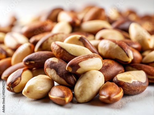 © Four888, Obraz premium Brazil Nuts on White Background - Tilt-Shift Photography for Stunning Visual Appeal