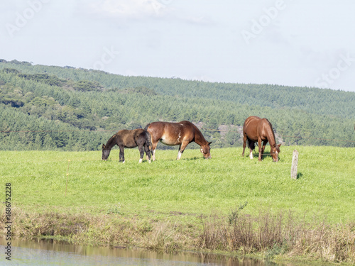 © vladislav333222, Fototapeta premium Brazil, thre horse passed on a louce near the forest