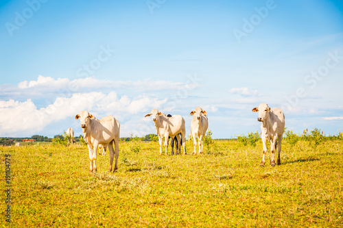 Fototapeta premium Brazilian nelore catle on pasture in Brazil's countryside.