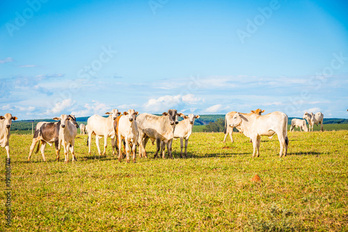 Fototapeta premium Brazilian nelore catle on pasture in Brazil's countryside.