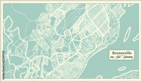 Obraz premium Brazzaville Congo City Map in Retro Style. Outline Map.