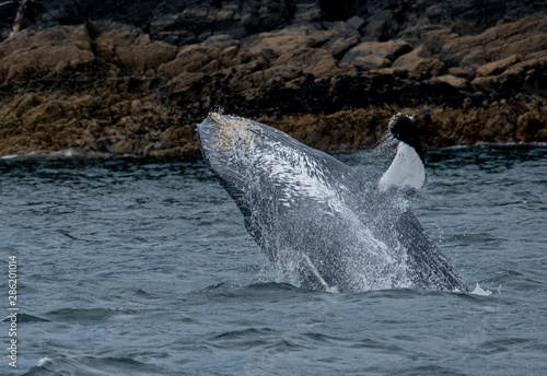© Betty Sederquist, Fototapeta premium Breaching Baby Humpback Whale
