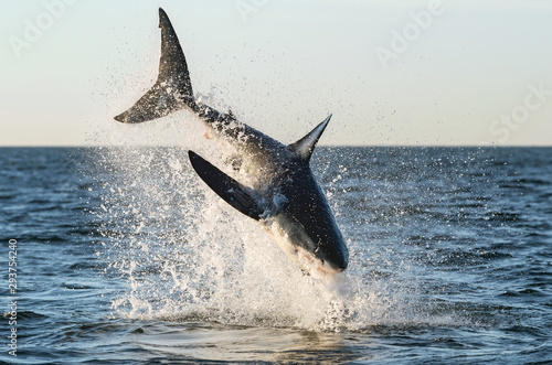 Fototapeta premium Breaching Great White Shark. Scientific name: Carcharodon carcharias. South...