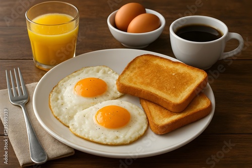© AbdulQadir, Fototapeta premium Breakfast Table with Eggs and Toast