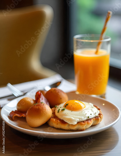 © Zahra, Fototapeta premium breakfast with orange juice and croissant
