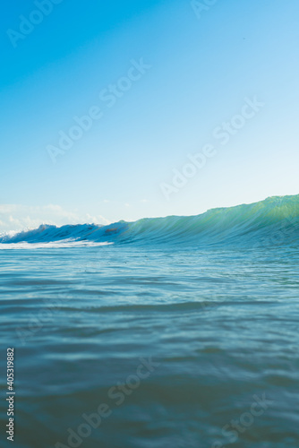 Naklejka premium Breaking Waves and spray, white water and light reflected on the surface of...