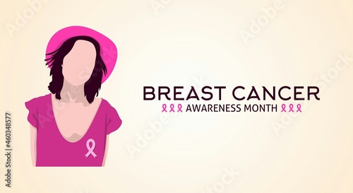 © YB14, Obraz premium Breast cancer awareness month theme. Vector illustration. Character female flat design.