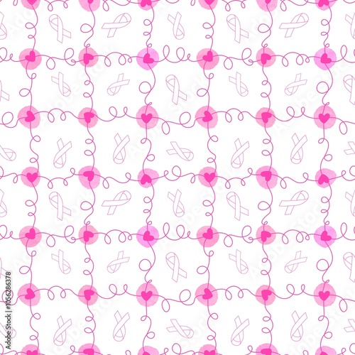 © Tetiana, Obraz premium Breast cancer month seamless pink ribbon day mammogram pattern