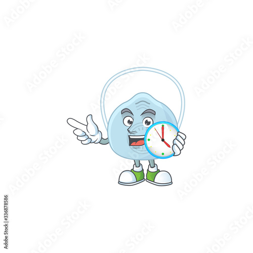 Obraz premium Breathing mask mascot design concept holding a circle clock