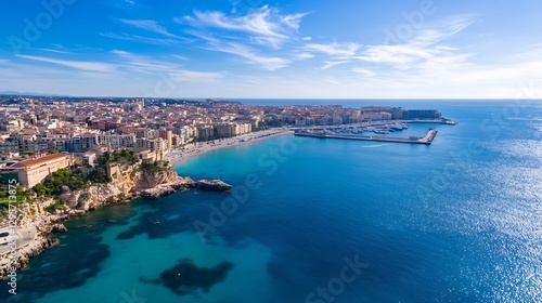 Fototapeta premium Breathtaking aerial view of coastal city showcasing vibrant buildings and...