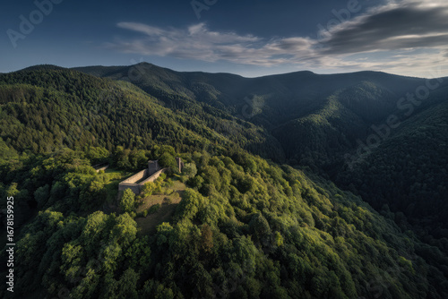 Fototapeta premium breathtaking aerial view of historical castles nestled amidst lush greenery...