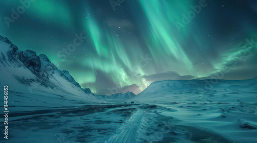 Fototapeta premium Breathtaking aurora borealis illuminates snowy landscape at night