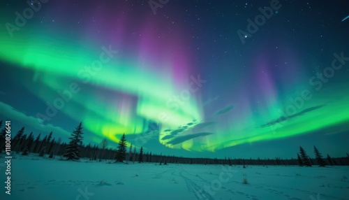 © Pixsite, Naklejka premium Breathtaking Aurora Borealis over a Snowy Landscape
