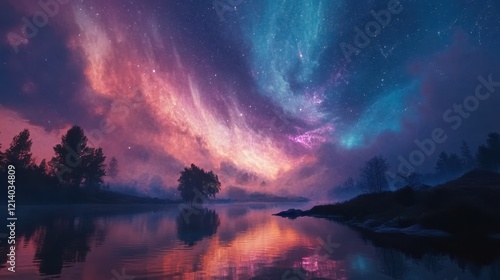 Fototapeta premium Breathtaking Aurora Borealis Reflected on Calm Lake at Night