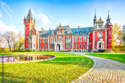 Obraz premium Breathtaking autumn landscape with Plawniowice palace.