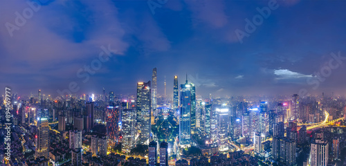 © zhouyilu, Fototapeta premium Breathtaking Cityscape Panorama at Night with Vibrant Lights