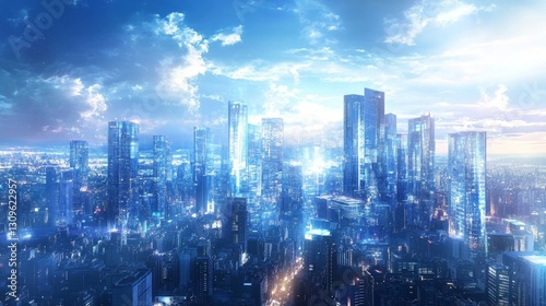 © Pichapob, Obraz premium Breathtaking Contemporary City Skyline Spectacle at Dusk