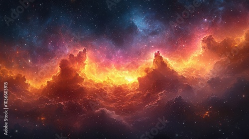 Fototapeta premium Breathtaking cosmic clouds illuminated by vibrant colors in the universe during a stellar moment of celestial wonder