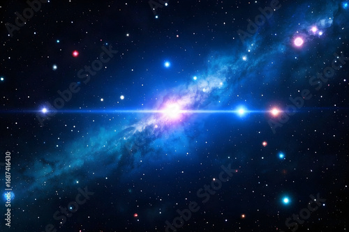 Naklejka premium Breathtaking cosmic nebula with vibrant stars and luminous galactic core...
