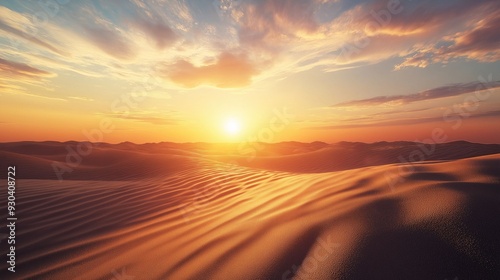Fototapeta premium Breathtaking desert landscape at sunset, with golden sand dunes illuminated...