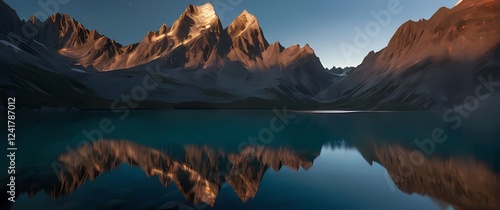 © RobinsonIcious, Obraz premium Breathtaking details of craggy mountains reflecting in a clear alpine lake