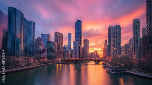 Fototapeta premium Breathtaking Dubai Skyline at Sunset - Aerial Cityscape Photography