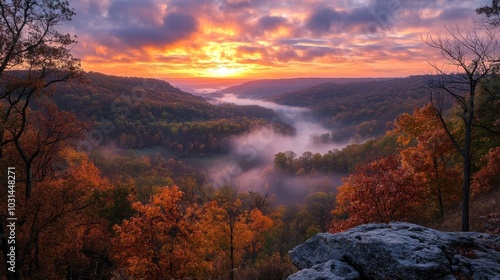 © Ben, Fototapeta premium Breathtaking Fall Landscape Captured in Digital Photography, Showcasing Rich Colors and Light Mist for an Epic Autumn Experience.