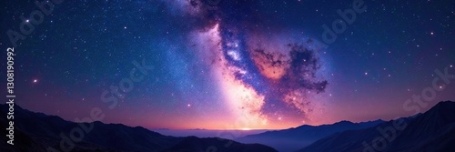 Naklejka premium Breathtaking galaxy panorama, starry night sky , cosmos, astrophotography