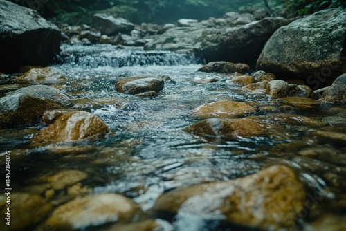 Fototapeta premium Breathtaking Image of a Clear Stream Flowing Over Rugged Stones Suitable for...