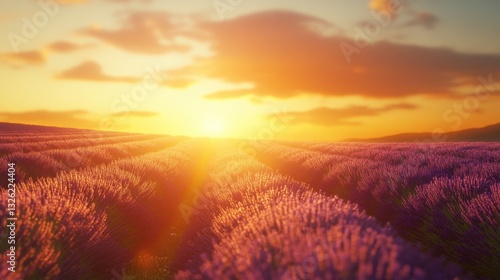 Fototapeta premium Breathtaking Lavender Field at Golden Sunset A Dreamy Floral Landscape.