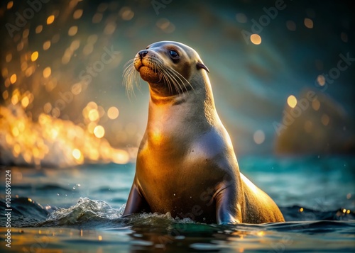 © Adisorn, Obraz premium Breathtaking low-light shots illuminate the enchanting world of sea lions.