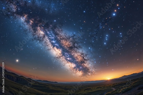 © Michael, Fototapeta premium Breathtaking Milky Way Panorama Explore the Wonders of the Cosmos