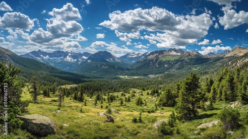 Obraz premium Breathtaking Mountain Landscape Under Blue Sky and Fluffy Clouds