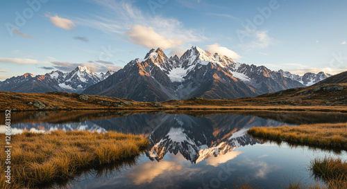Fototapeta premium Breathtaking mountain range reflecting in a clear lake