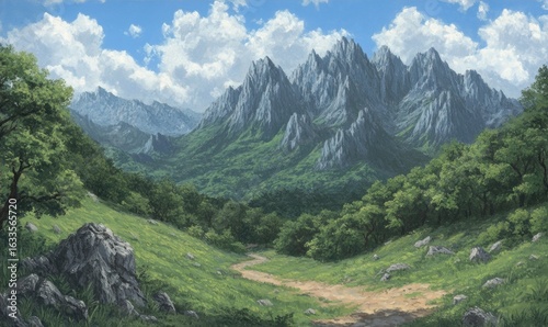 © Azril, Fototapeta premium Breathtaking mountain vista landscape scenic environment backdrop illustration