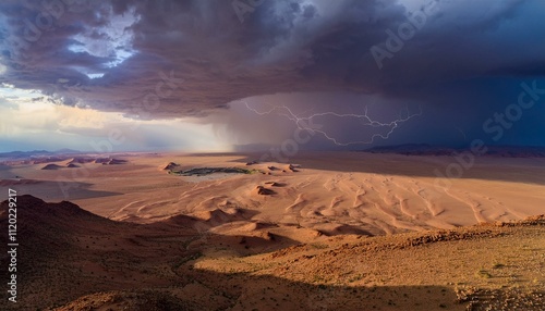 Naklejka premium Breathtaking Namib Desert Landscape During a Thunderstorm with Lightning