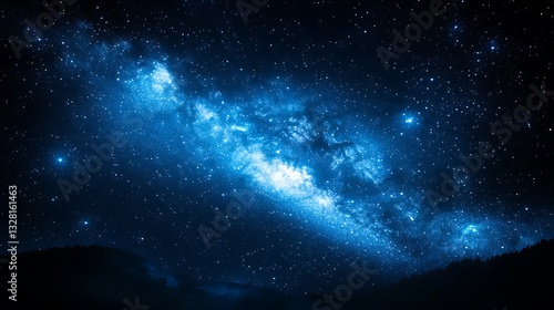 Naklejka premium Breathtaking Night Sky With Milky Way Galaxy Over Dark Hills, blue space view...