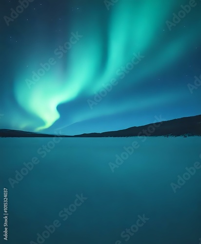 Fototapeta premium Breathtaking Northern Lights Over Arctic Ocean at Night - Vibrant Green Blue...