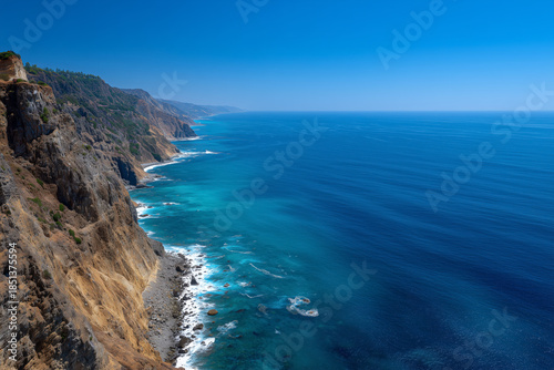 Fototapeta premium Breathtaking ocean waves crashing against rugged rocky coastline on a sunny day