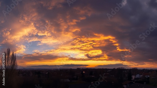 © Ben, Obraz premium Breathtaking Panoramic Sunset Casting a Golden Hue Over the Horizon