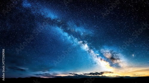 Fototapeta premium Breathtaking panoramic view of night sky filled with countless stars, showcasing Milky Way