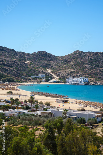 Obraz premium Breathtaking panoramic view of the famous Mylopotas beach in Ios Greece
