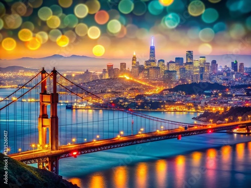 © Sirinporn, Fototapeta premium Breathtaking San Francisco Skyline and Coastline with Bokeh Effect