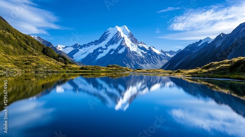 Naklejka premium Breathtaking Scenic View of SnowCapped Mountain Reflected in Serene Lake :...
