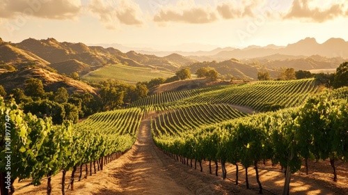 Fototapeta premium Breathtaking Scenic Vineyards at Sunset in Mountainous Countryside