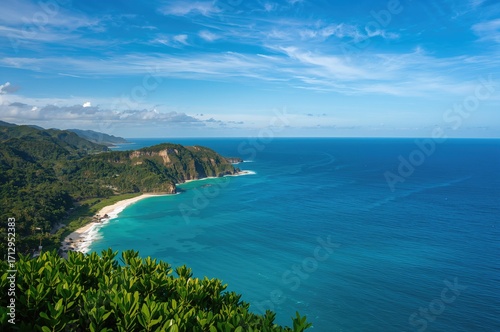 © Rizvan, Naklejka premium Breathtaking Seaside Landscape Featuring Vibrant Green Cliffs and Crystal Clear Blue Waters