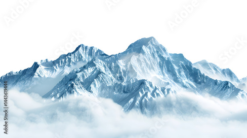 Obraz premium Breathtaking Snow Capped Mountain Landscape with Blue Sky and Clouds Isolated